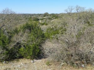 Rock Springs is amply named. There are plenty of rocks in Edwards County! Many of the ranches in the region have been degraded due to overgrazing, especially during drought conditions. With a thin top-soil, this will cause choice grasses and woody plants to disappear. On this property however, very light rotational grazing has resulted in good native grass cover with quality species such as little blue stem. Wildlife cover and browse plants are in good shape as well. Although there is some cedar on the tract, it is not a monoculture. Live oak, persimmon, mountain laurel, bernardia and algarita are present in good numbers along with good deer browse plants such as cat claw acacia and shin oak.