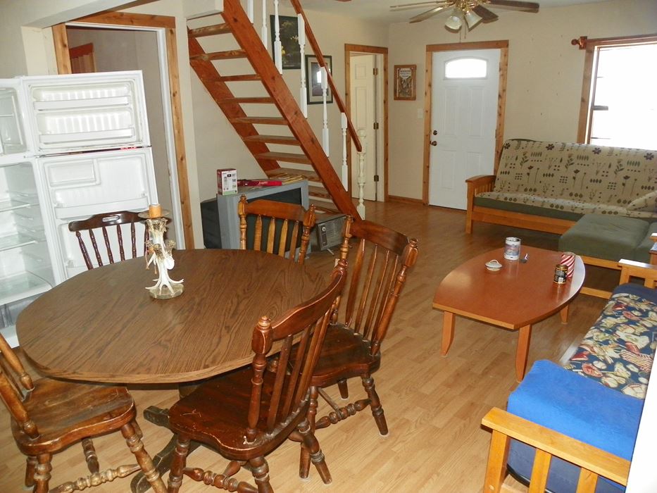 The current owner had a camper that served his purposes in the beginning but he wanted more space so he built a log cabin attached to the camper. The cabin has a kitchen/main room with bathroom and two bedrooms down stairs plus a loft with bunk beds upstairs. There is electricity to the cabin, plus phone service and a well that produces excellent water quality. The house has a 1,000 gallon septic tank. In addition, there are six hunting blinds and corn feeders that convey. There is also a covered skinning shed and a concrete slab with outdoor chimney for evenings by a campfire. All furnishings except for a few personal items go with the sale.